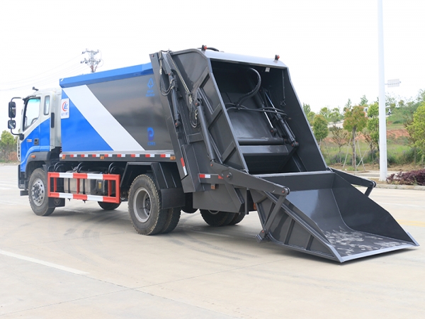 壓縮式垃圾車工作裝置:不同用戶可根據(jù)不同的垃圾搜集方式,選裝不同的翻桶(斗)機(jī)構(gòu):翻標(biāo)準(zhǔn)垃圾鐵桶ZBT59003-88(300L)、塑料垃圾桶(240L)、塑料垃圾桶(660L)、隨車小垃圾斗(800L)、密封遮蓋式垃圾斗(1400L)、擺臂垃圾斗(3000L)。