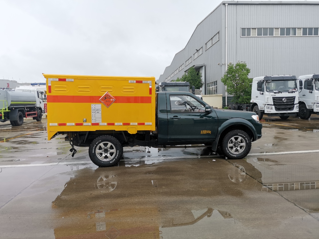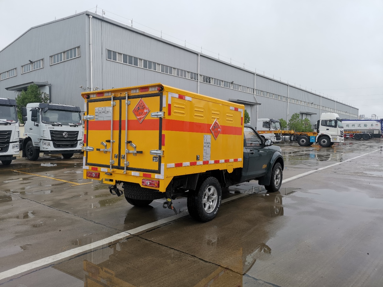 廂體頂部封閉,不可開(kāi)啟;廂體可選裝無(wú)側(cè)門(mén);選裝不同形式的側(cè)開(kāi)門(mén);車(chē)身側(cè)面及后部粘貼橙色反光標(biāo)識(shí)和爆炸品菱形標(biāo)示,在車(chē)體后部設(shè)置安全標(biāo)示;危險(xiǎn)貨物運(yùn)輸車(chē)輛的車(chē)輛類型EX/Ⅱ;用于運(yùn)輸具有**包裝的黑火藥,壓縮黑火藥,硝胺炸藥,電引爆雷管,爆破炸藥,點(diǎn)燃導(dǎo)火索,專用煙火制品,類項(xiàng)號(hào):1.1D,1.1D,1.1B,1.1D,1.4G,1.1 D,1.1G;該車(chē)安裝具有衛(wèi)星定位功能的行駛記錄儀;ABS型號(hào):EV5010,EV5011;ABS生產(chǎn)廠:博世汽車(chē)部 件(蘇州)有限公司,博世汽車(chē)部件(蘇州)有限公司;發(fā)動(dòng)機(jī)**大凈功率**kW;僅用子午線輪胎,裝備限速裝置,前置式排氣管,排氣制動(dòng);前輪采用盤(pán)式制動(dòng);油耗對(duì)應(yīng)關(guān)系:ZD25T6(7.7) |